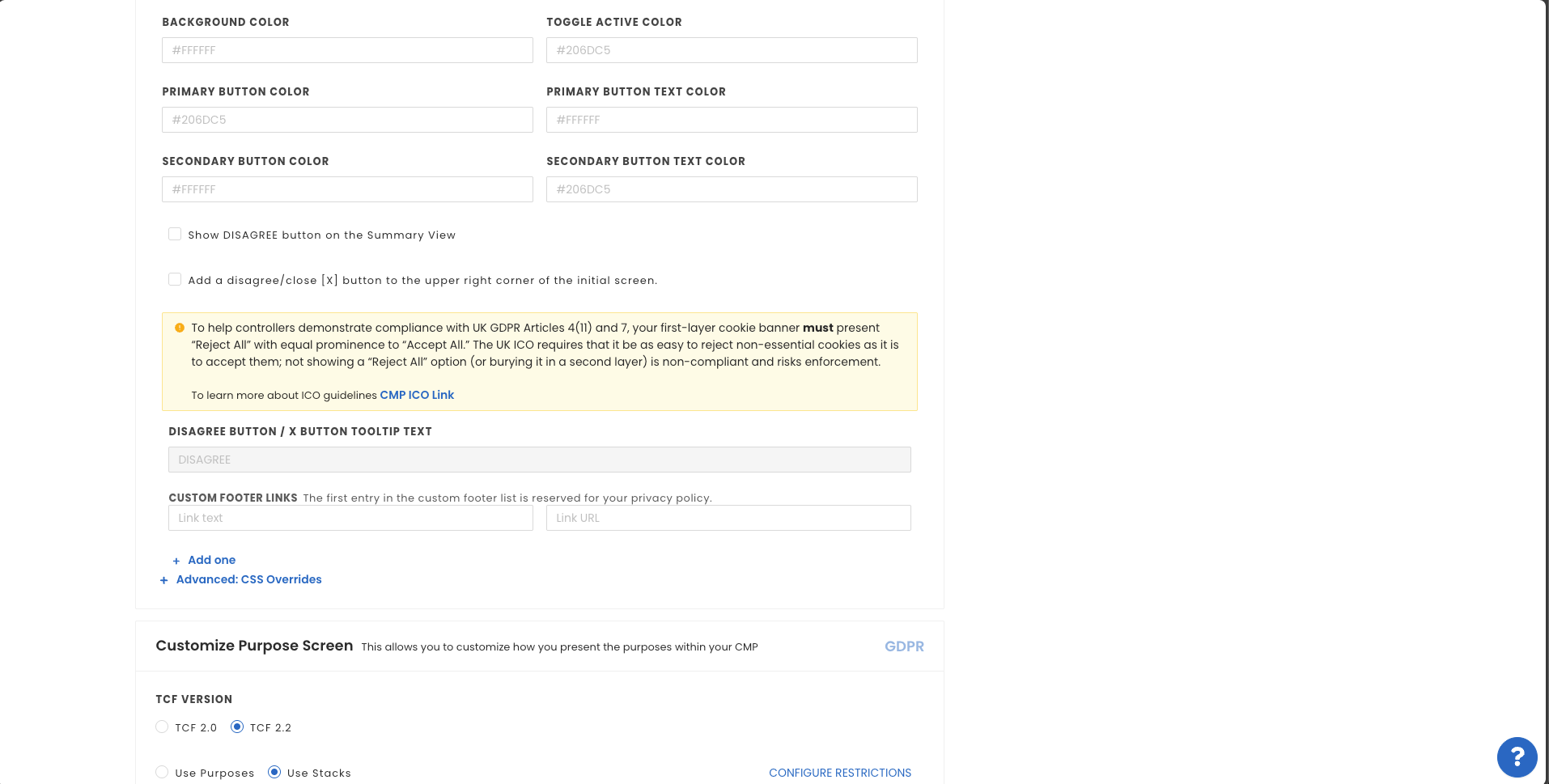 InMobi CMP supports these requirements through an option in the Themes settings, which provides the necessary setup required to be compliant with the UK ICO.
