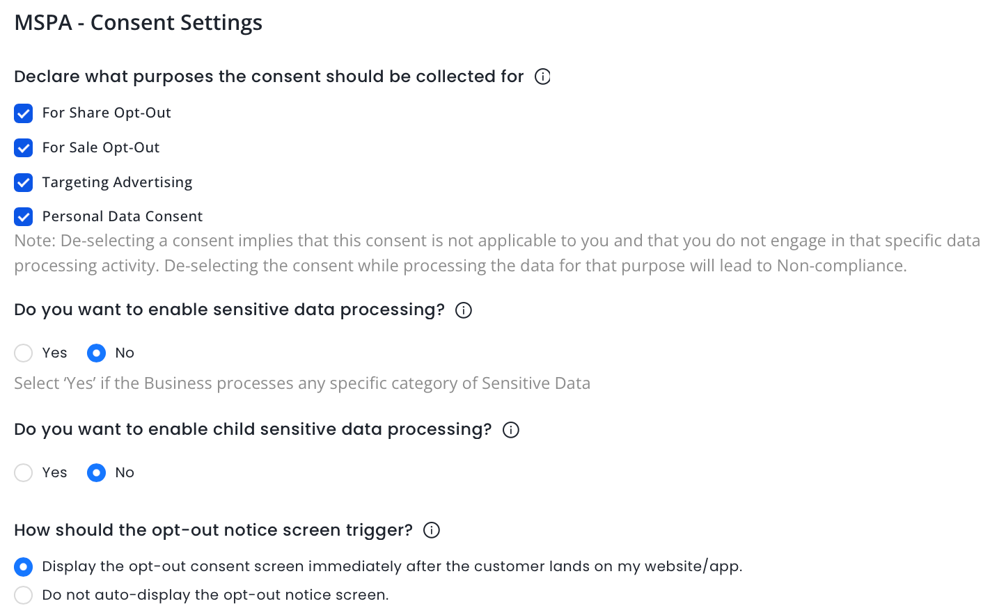 MSPA - Consent Settings