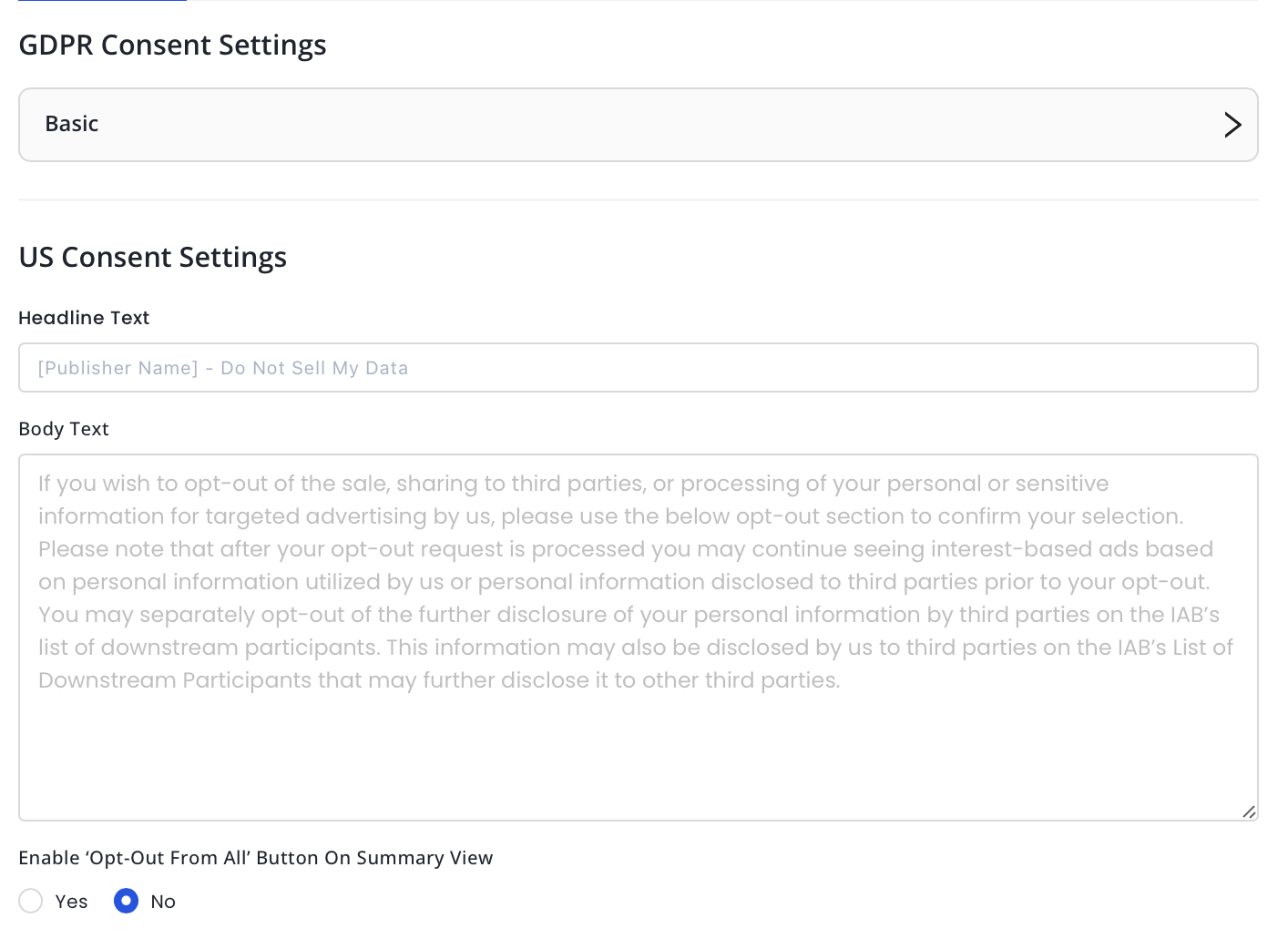 US Consent Settings
