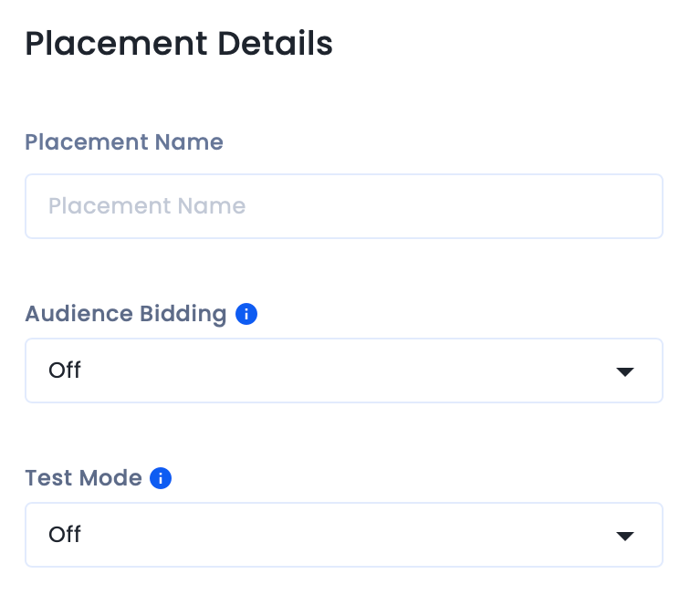 - Name your placement and select Off from the Audience Bidding dropdown. Click Create Placements.